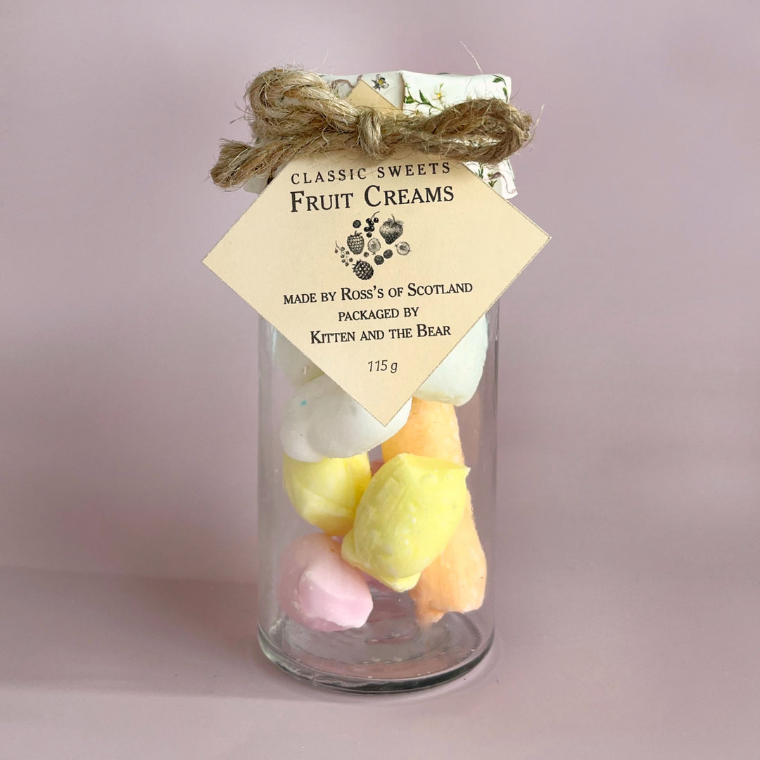 Description: Classic creams - a traditional powdery sweet akin to Edinburgh rock - in a bright fruity flavour. Slight crispy and melt in your mouth.