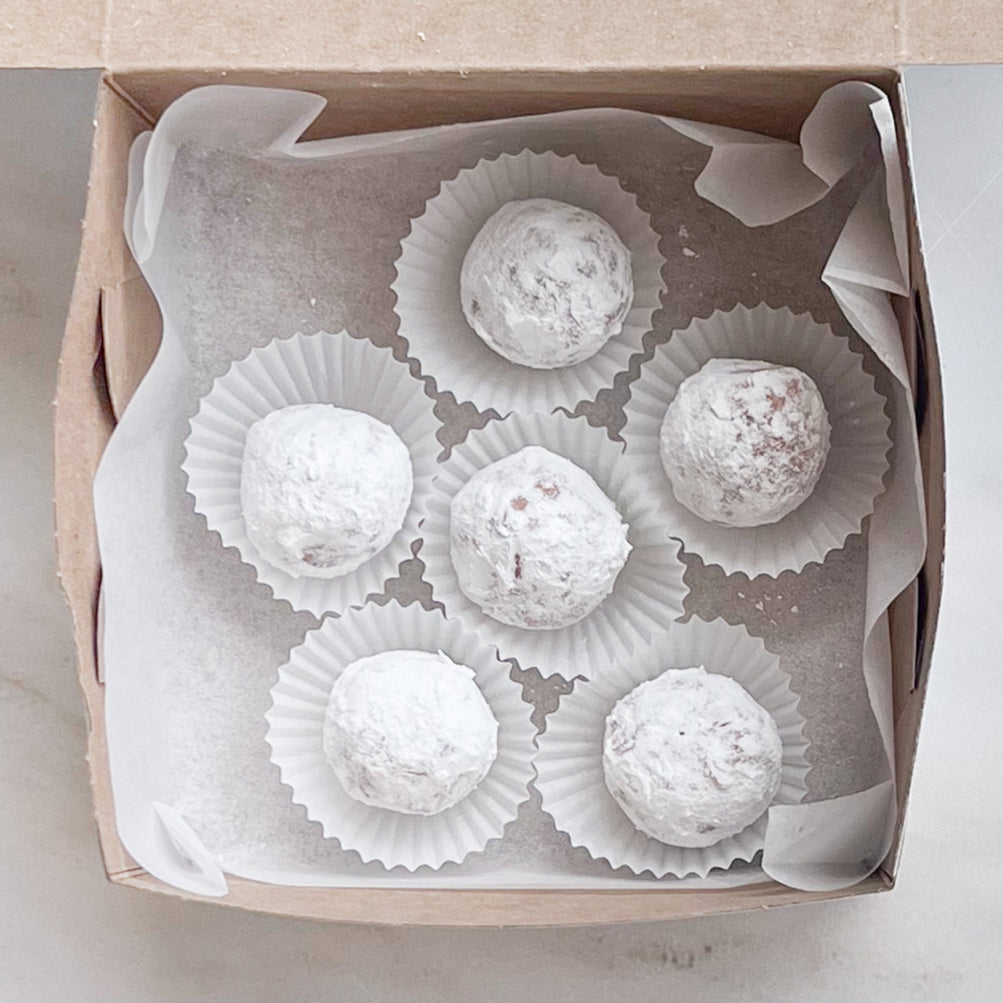 Small bites bursting with raspberry flavour with a hint of rose, dusted with powdered sugar